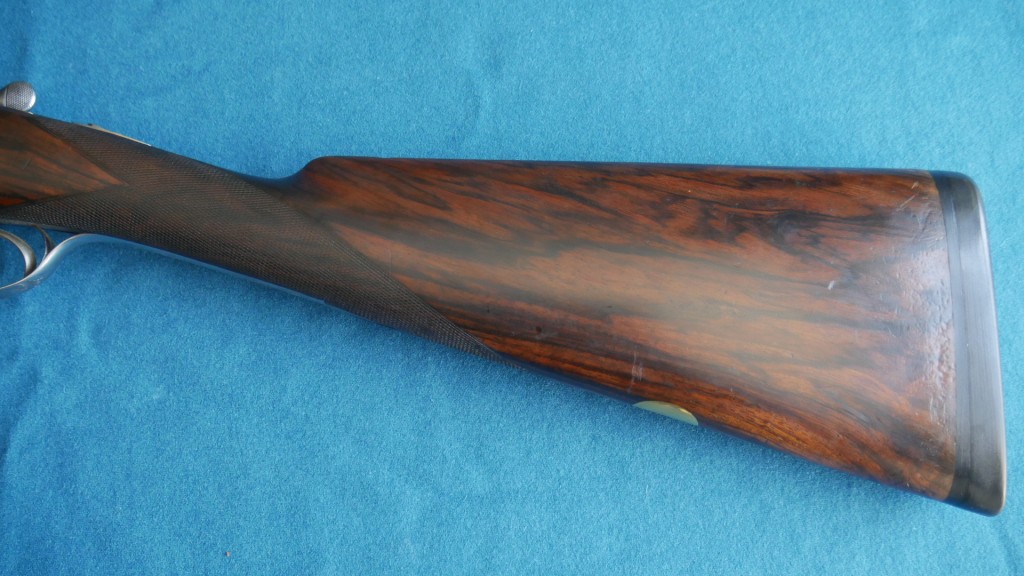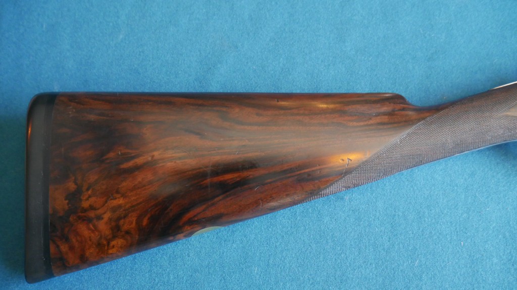 12-BORE SINGLE TRIGGER HAND DETACHABLE BOXLOCK EJECTOR GUN, 28 inch barrels, with 2 1/2 inch chambers, improved cylinder and modified choke borings, doll's head extension, the scrollback frame and patent top lever retaining much hardening colour, possibly renewed, the maker's name signed in gold, the removable base plate revealing the hand detachable locks, selective single trigger, 15 inch well figured stock, 7lb, nitro proof made in 1953 S/N 18773