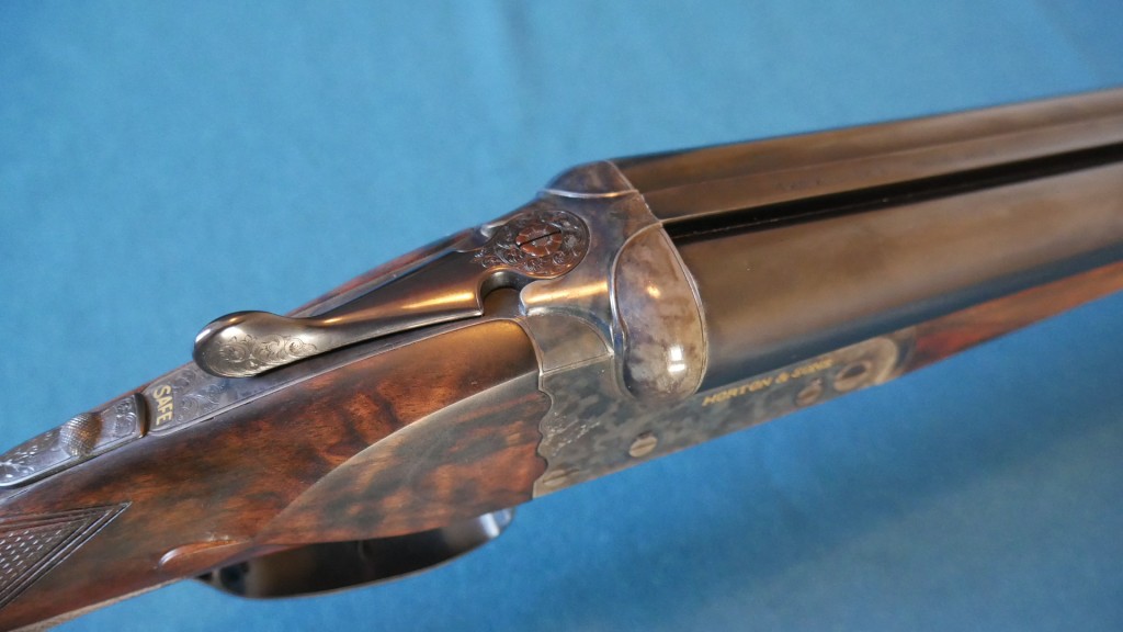 Horton & Sons 12 Gauge boxlock 28 inch barrels Improved Cyclinder and Modified. 6lb 6oz 15" LOP, 1/4" cast off, drop at comb 1 1/2" drop at heel 2 1/8".
